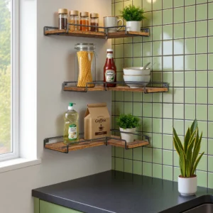 VASAGLE Floating Shelves, Set of 3, L-Shaped Corner Shelves for Wall, Industrial Style, for Living Room, Bedroom, Kitchen
