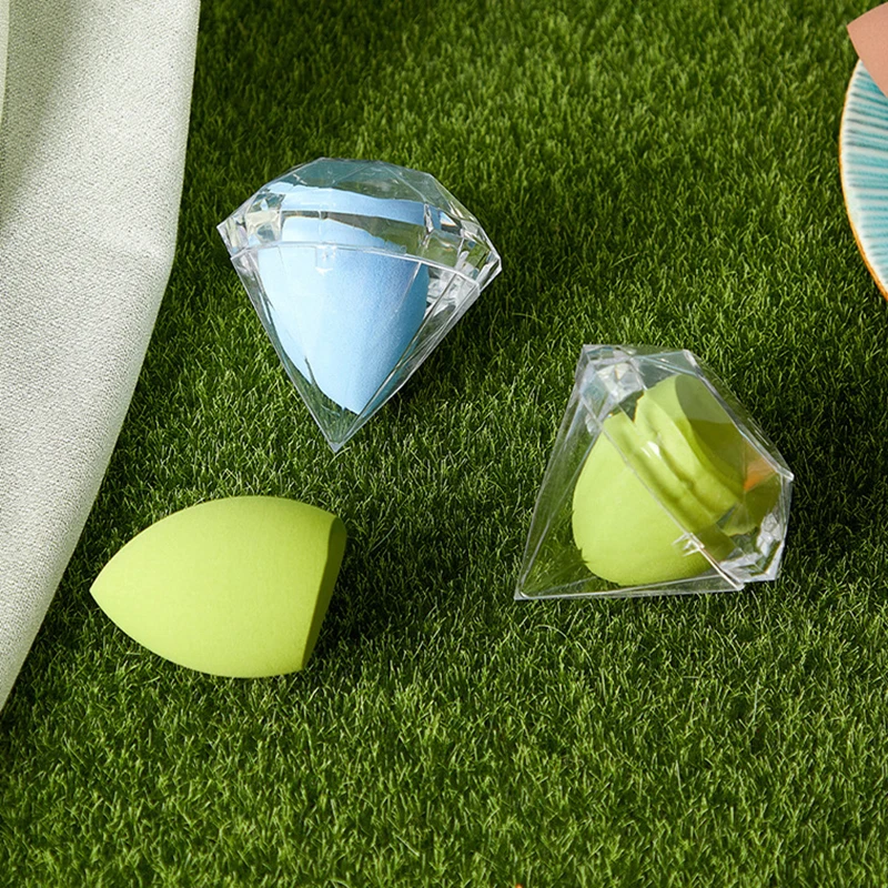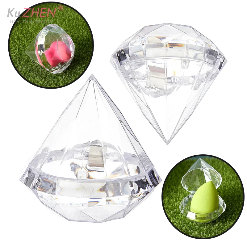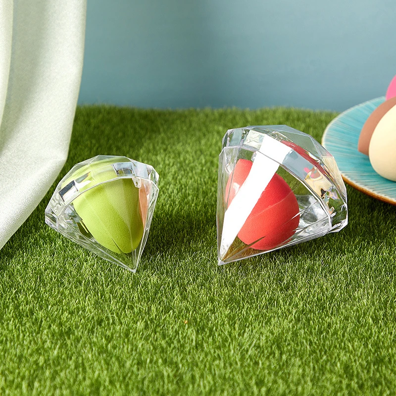Empty Makeup Sponge Storage Box Plastic Diamond Shaped Cosmetic Puff Organizer Rack Portable Makeup Blender Holder Stand Drying