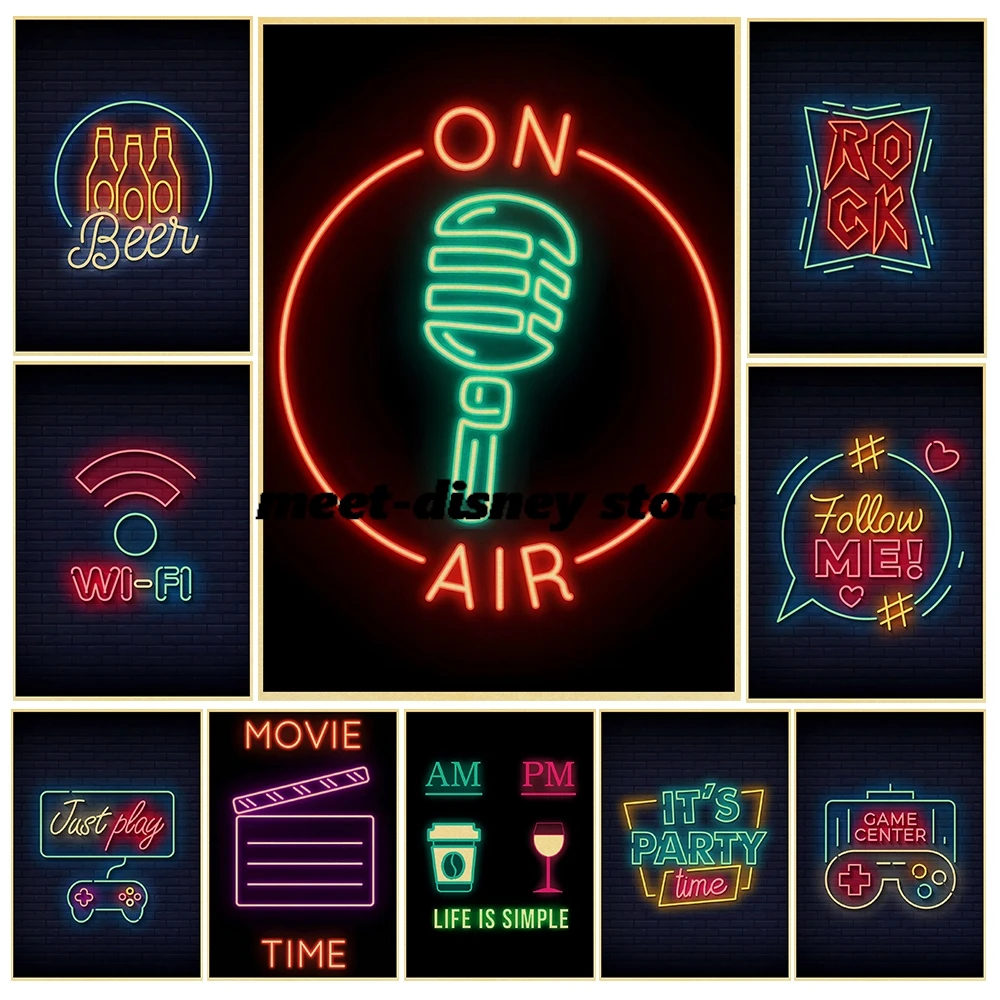 Neon Sign Painting Animals Posters Kraft Paper Print Decoration Chambre Art Picture Living Room Landscape Cafe Wall Poster