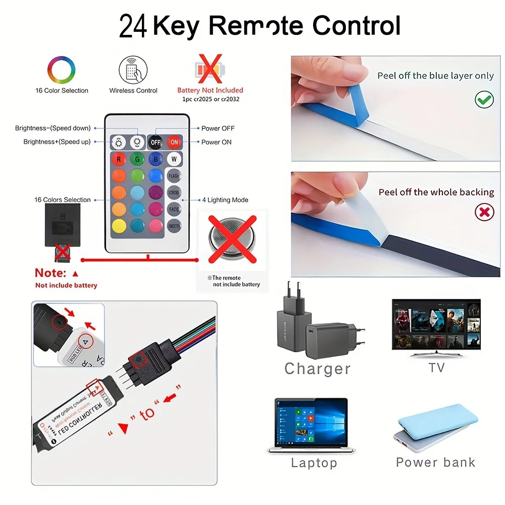 RGB LED Strip, can only emit one color at the same time, cannot display multiple colors at the same time